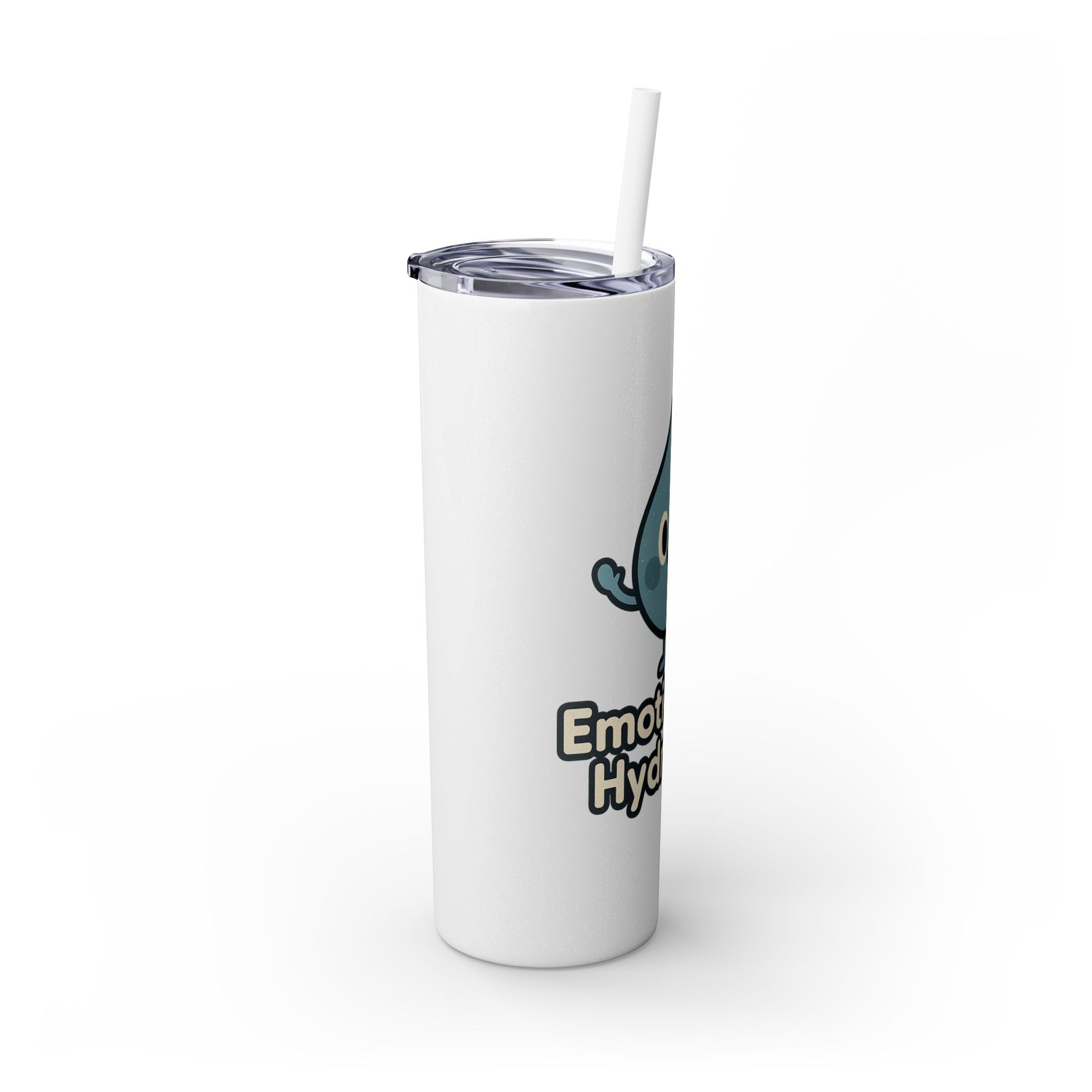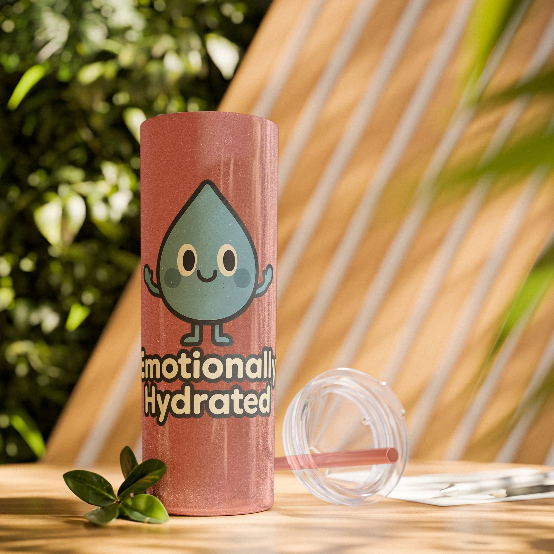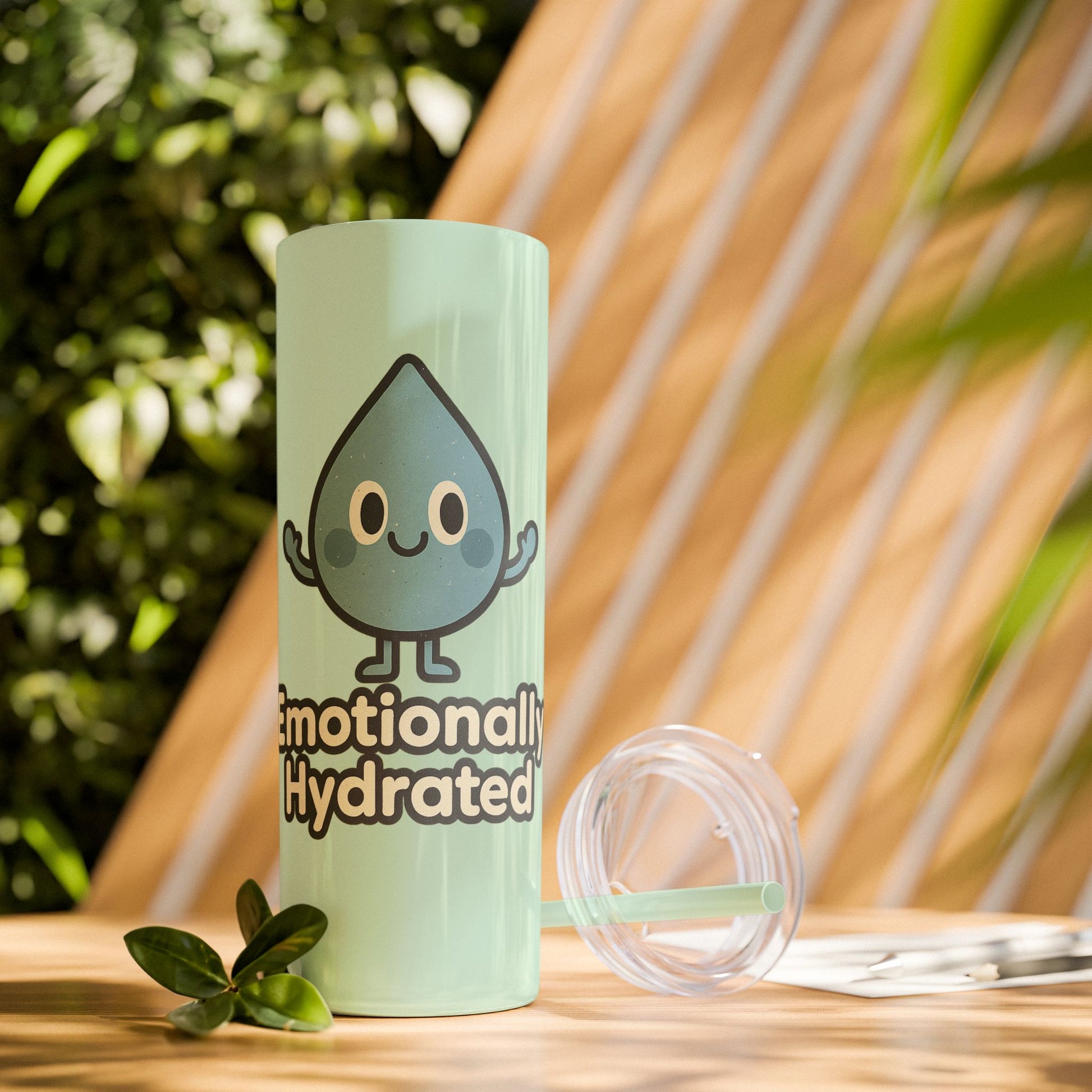 Emotionally Hydrated Tumbler, Cute Water Bottle, 20 oz Slim Cold Drink Cup, Motivational Gift, Summer Hydration, Reusable Straw Cup