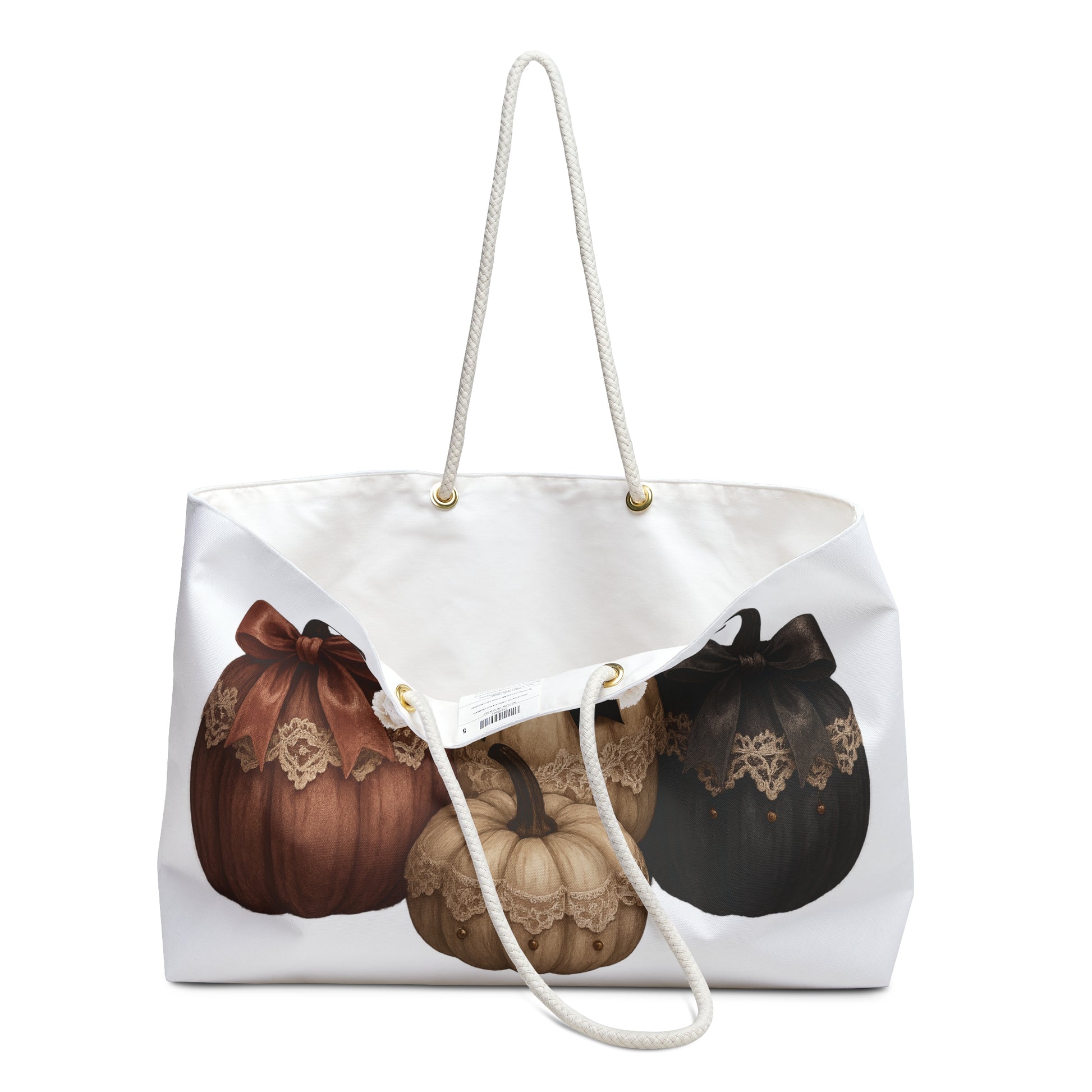 Introducing a stylish Weekender Bag, perfect for your autumn adventures! Featuring a whimsical design of elegantly crafted pumpkins adorned with lace and bows, this bag radiates a cozy and festive vibe. The roomy interior is ideal for your overnight essentials, making it an excellent choice for weekend getaways, trips to the pumpkin patch, or cozy fall outings with friends. Perfect for those who love unique, seasonal styles, this bag is a wonderful gift for anyone who appreciates both functionality and autumn aesthetics. Ideal for Halloween, Thanksgiving, or any fall celebration, you’ll carry the spirit of the season wherever you go!