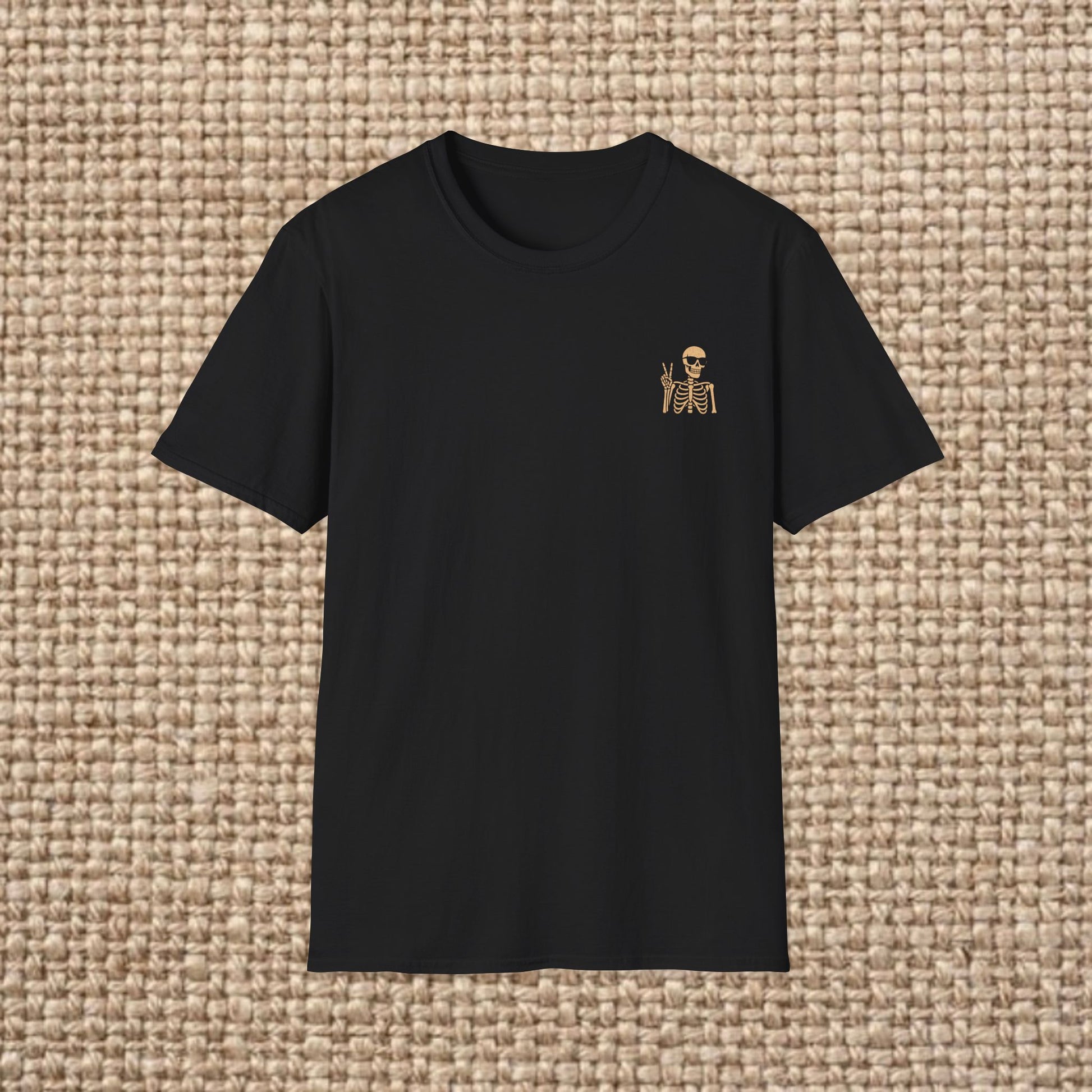 Introducing a uniquely designed Unisex Softstyle T-Shirt that effortlessly combines comfort and style. This t-shirt radiates a fun, laid-back vibe, perfect for casual outings or relaxed weekends. With its eye-catching skeleton graphic, it’s the ideal choice for those who appreciate quirky, playful designs. Whether you’re heading to a Halloween party, enjoying a summer barbecue, or simply lounging at home, this tee fits seamlessly into your lifestyle. It’s a great gift for friends, family, or anyone with a sense of humor. The shirt's versatility makes it suitable for various occasions throughout the year, from casual hangouts to themed celebrations. Product features - Seamless design reduces fabric waste, enhancing attractiveness. - Highly elastic ribbed collar maintains shape and comfort. - Stabilizing shoulder tape prevents stretching for durability. - Crafted from specially spun fibers for a smooth, durable feel. - Ethically made with Oeko-Tex certification for safety and quality. Care instructions - Do not dryclean - Do not bleach - Tumble dry: low heat - Iron, steam or dry: low heat - Machine wash: cold (max 30C or 90F), with similar colors