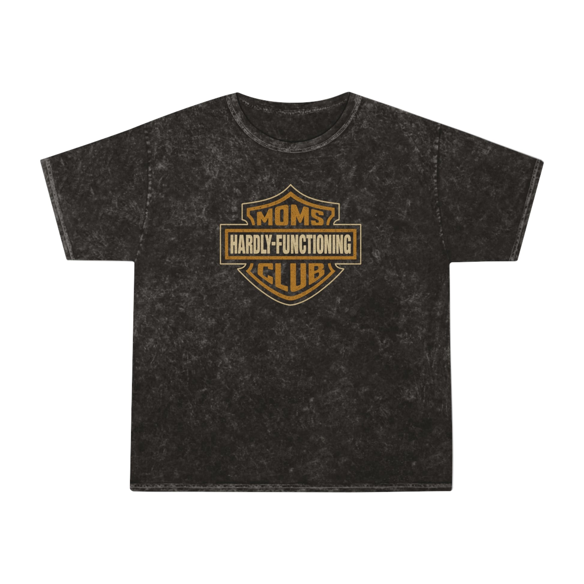 Unisex Mineral Wash T-Shirt for Moms: Hardly-Functioning Club, Funny Gift, Casual Wear, Everyday Comfort, Special Occasion Tee