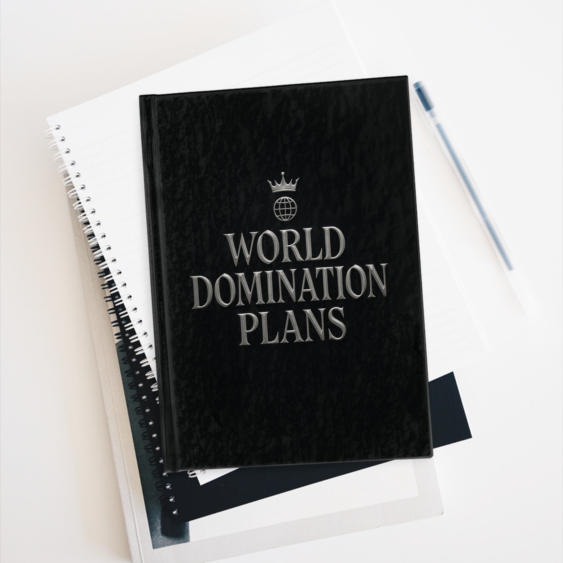 World Domination Plans Journal - Creative Writing Notebook, Gift for Grown-Ups, Funny Planner, Black Journal, Unique Gift Idea